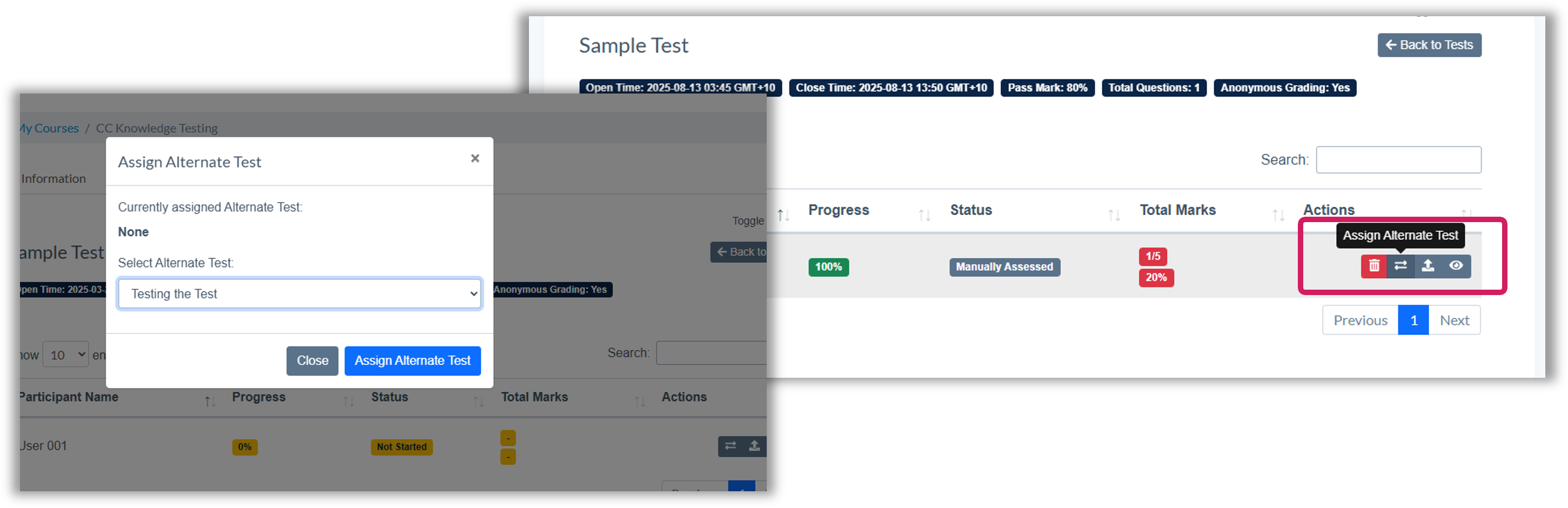 •Assigning an alternative test allows participants to attempt a new test if they have failed or missed the scheduled test.
