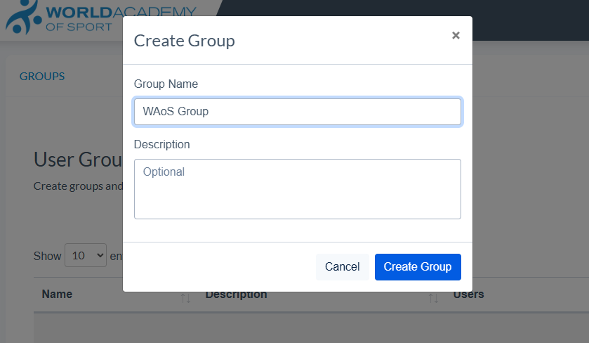 - Name the group and you can give a description to help you identify it later