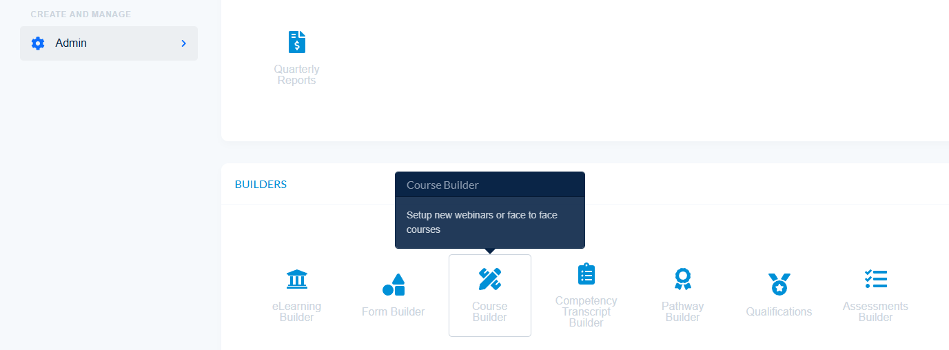 - Navigate to Admin - Course Builder to create a new course intake or to edit an existing one